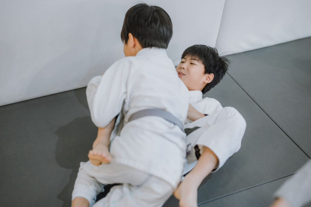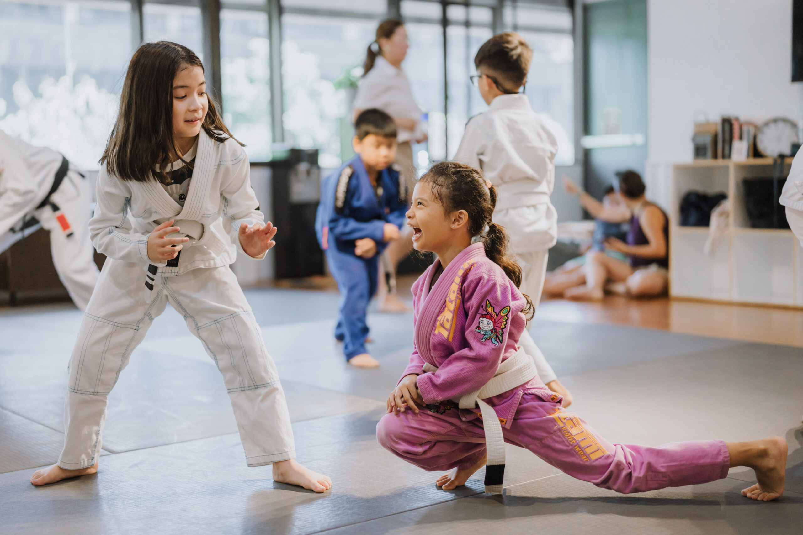 • Emphasizes control, teaching kids to adapt their skills without the kimono in a dynamic setting